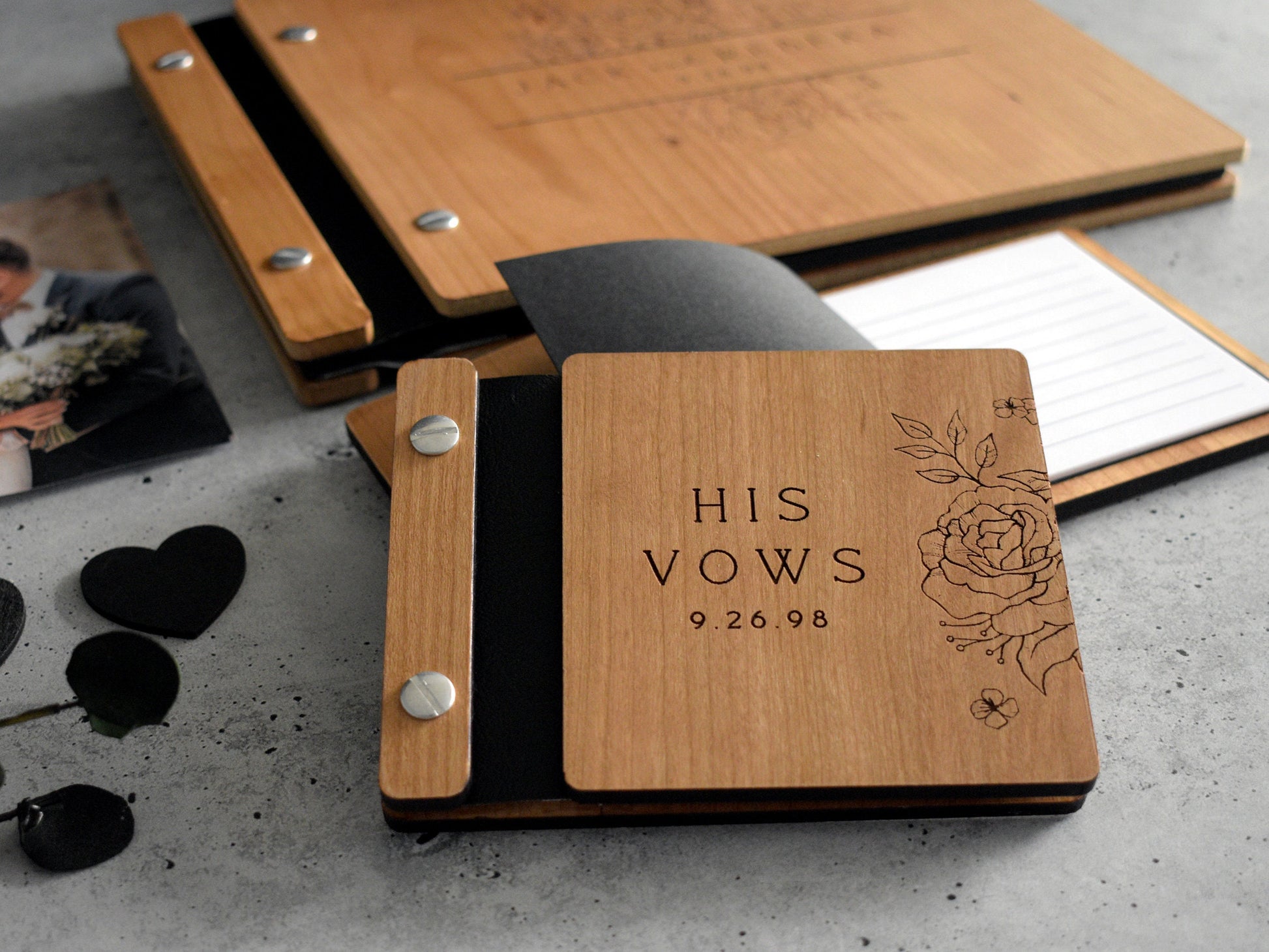 Gothic Wedding Wooden Vow Books, Rose Wedding Vow Book