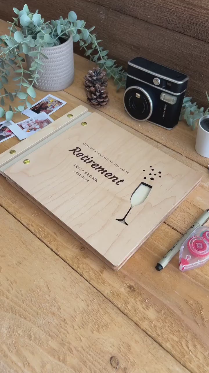 Introducing our Retirement Guest Book – a thoughtful way to commemorate a milestone career and capture well-wishes from colleagues and friends. Handcrafted with care, this book can be personalized with engraved details to mark this special occasion. Finished with an environmentally friendly UV coating, it’s both elegant and sustainable. Inside, acid-free paper offers a perfect space for messages, photos, and mementos. This versatile book can also be used as a scrapbook, photo album, or guest book, creating a lasting keepsake of a remarkable career.