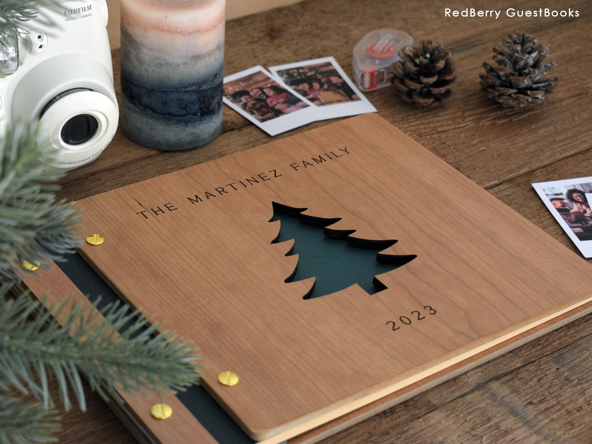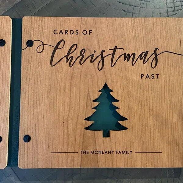 Introducing our Holiday Book – a festive keepsake for capturing holiday memories. Handcrafted and personalized with engraved details, this book features an environmentally friendly UV coating for durability. Inside, acid-free paper is perfect for photos, notes, and mementos. Use it as a scrapbook, photo album, or guest book to create a cherished holiday treasure.
