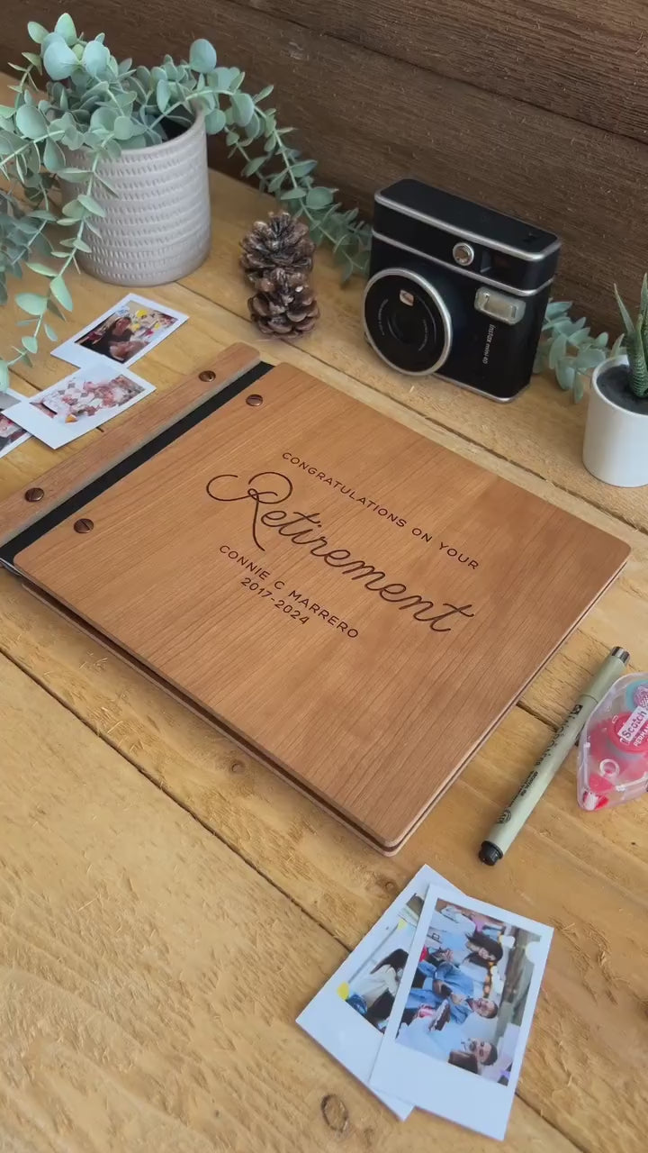 Introducing our Retirement Guest Book – a thoughtful way to commemorate a milestone career and capture well-wishes from colleagues and friends. Handcrafted with care, this book can be personalized with engraved details to mark this special occasion. Finished with an environmentally friendly UV coating, it’s both elegant and sustainable. Inside, acid-free paper offers a perfect space for messages, photos, and mementos. This versatile book can also be used as a scrapbook, photo album, or guest book, creating a lasting keepsake of a remarkable career.
