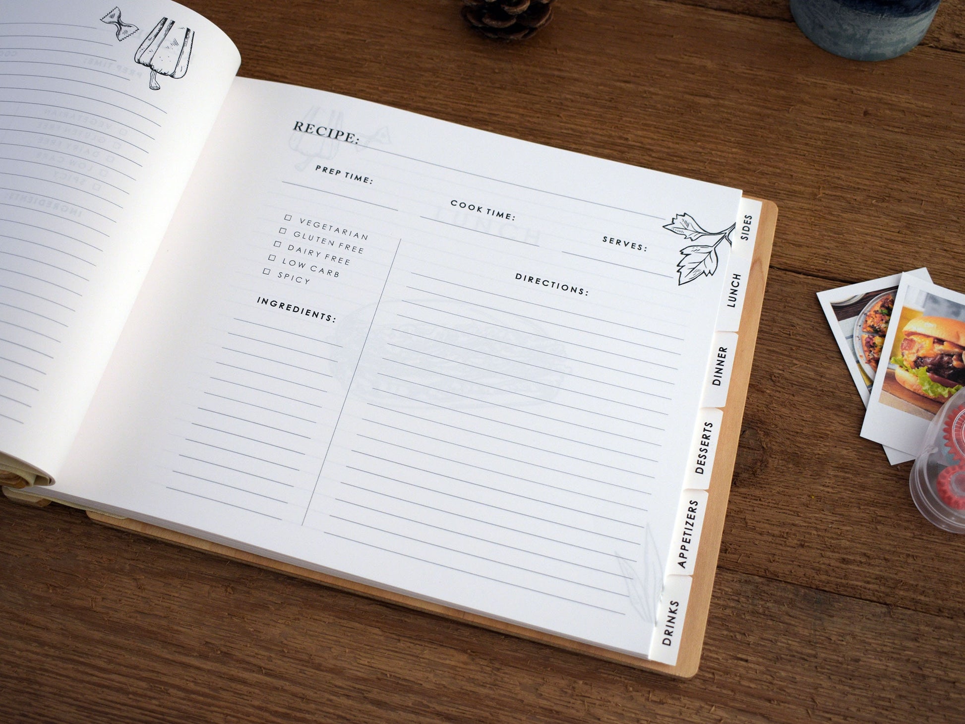 Introducing our Custom Recipe Book – the perfect way to preserve your family’s culinary traditions and favorite dishes. Handcrafted with care, this beautiful book features high-quality pages designed to hold your cherished recipes, notes, and cooking tips. With a choice of elegant covers and the option for personalized engravings, it’s a delightful keepsake for any cooking enthusiast. Finished with an environmentally friendly UV coating, it's both elegant and sustainable. Inside, acid-free paper ensures your recipes are protected for years to come. Create a lasting treasure filled with your favorite flavors!