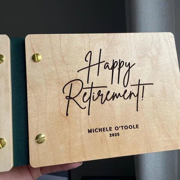 Retirement Book Gift for Him or Her, Wooden Album, Retirement Gift for Coworker