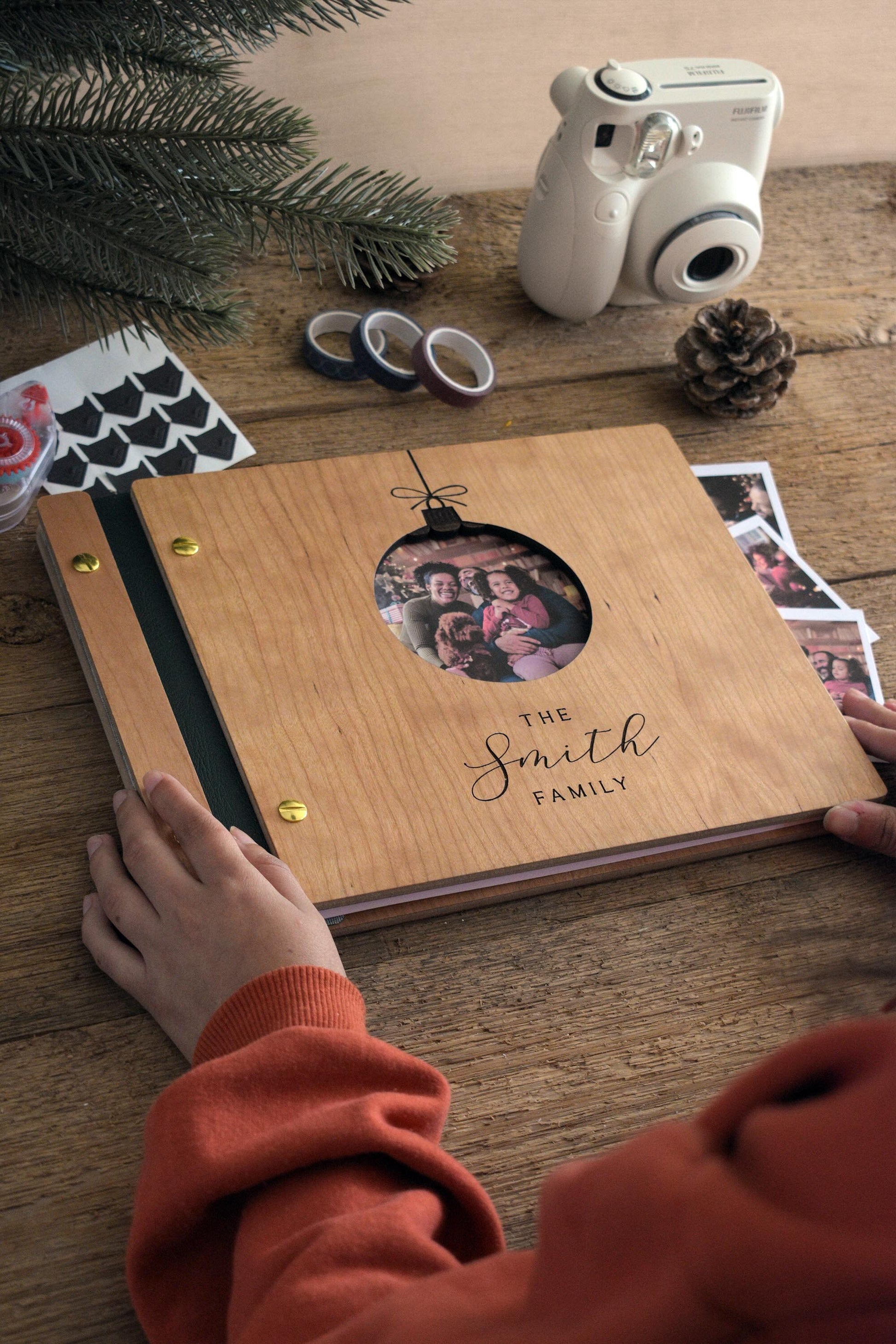 Introducing our Holiday Book – a festive keepsake for capturing holiday memories. Handcrafted and personalized with engraved details, this book features an environmentally friendly UV coating for durability. Inside, acid-free paper is perfect for photos, notes, and mementos. Use it as a scrapbook, photo album, or guest book to create a cherished holiday treasure.