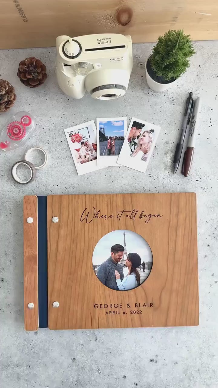 Celebrate your love story with our personalized wooden anniversary scrapbook, "Where It All Began." Perfect as an anniversary gift for him, a couple gift, or a wedding anniversary gift, this beautifully crafted album features a custom cover with your names and date. Ideal for preserving cherished memories, it’s a thoughtful Valentine's Day gift or a special keepsake for your boyfriend. Create a timeless tribute to your journey together with this unique and elegant anniversary scrapbook.