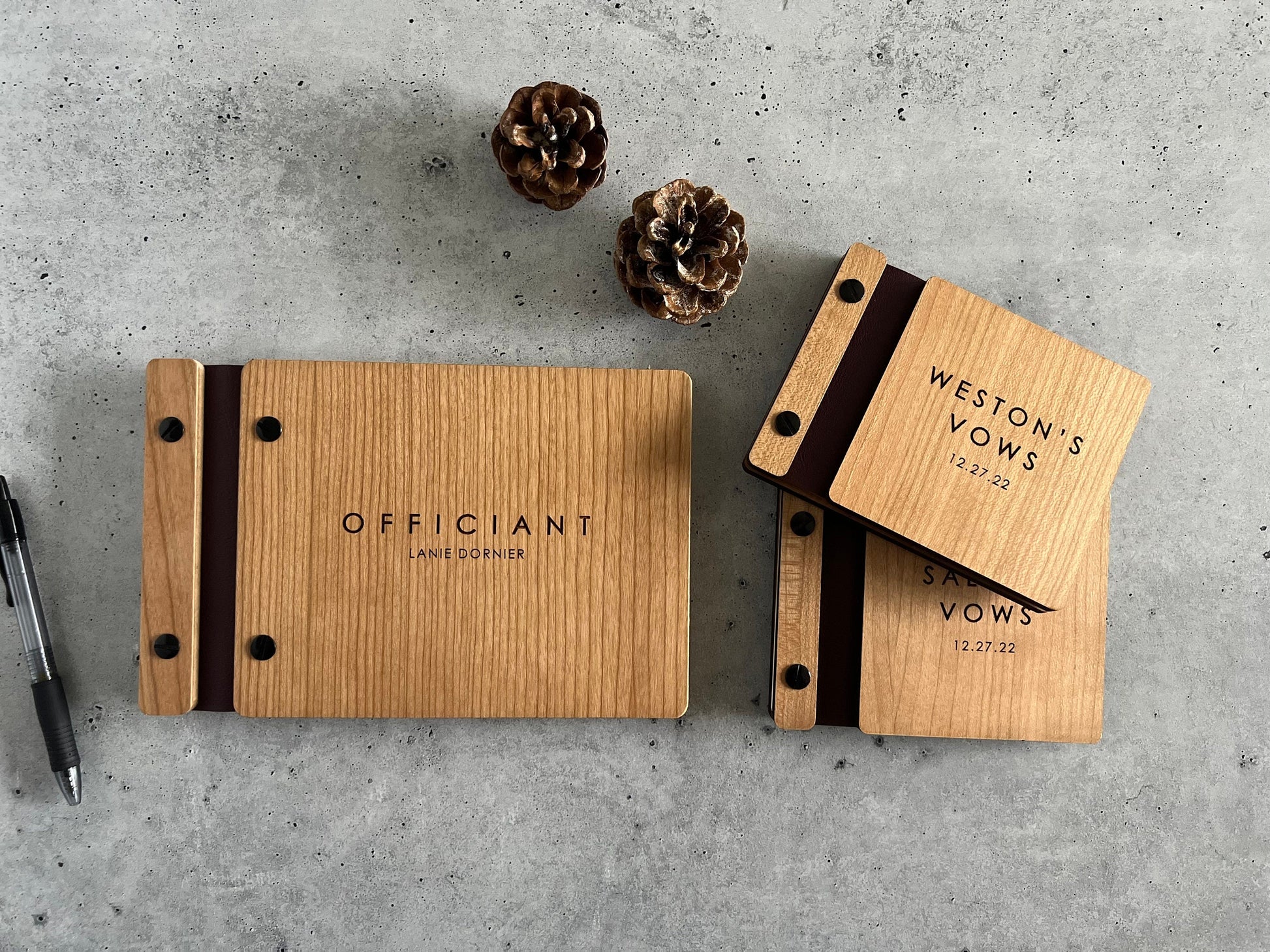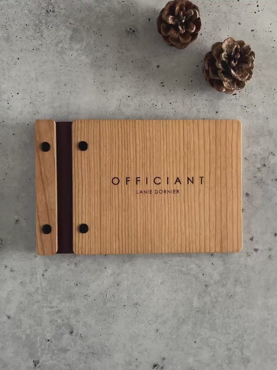 Introducing our Officiant Ceremony Book – the perfect companion for officiating weddings and special ceremonies. Handcrafted in the USA, this elegant book can be personalized with engraved details to reflect your style. Finished with an environmentally friendly UV coating, it’s designed to be both durable and sustainable. Inside, the acid-free paper provides a high-quality space for notes, vows, and important readings. Compact and timeless, this book is a beautiful keepsake for officiants to use and treasure at every ceremony they lead.