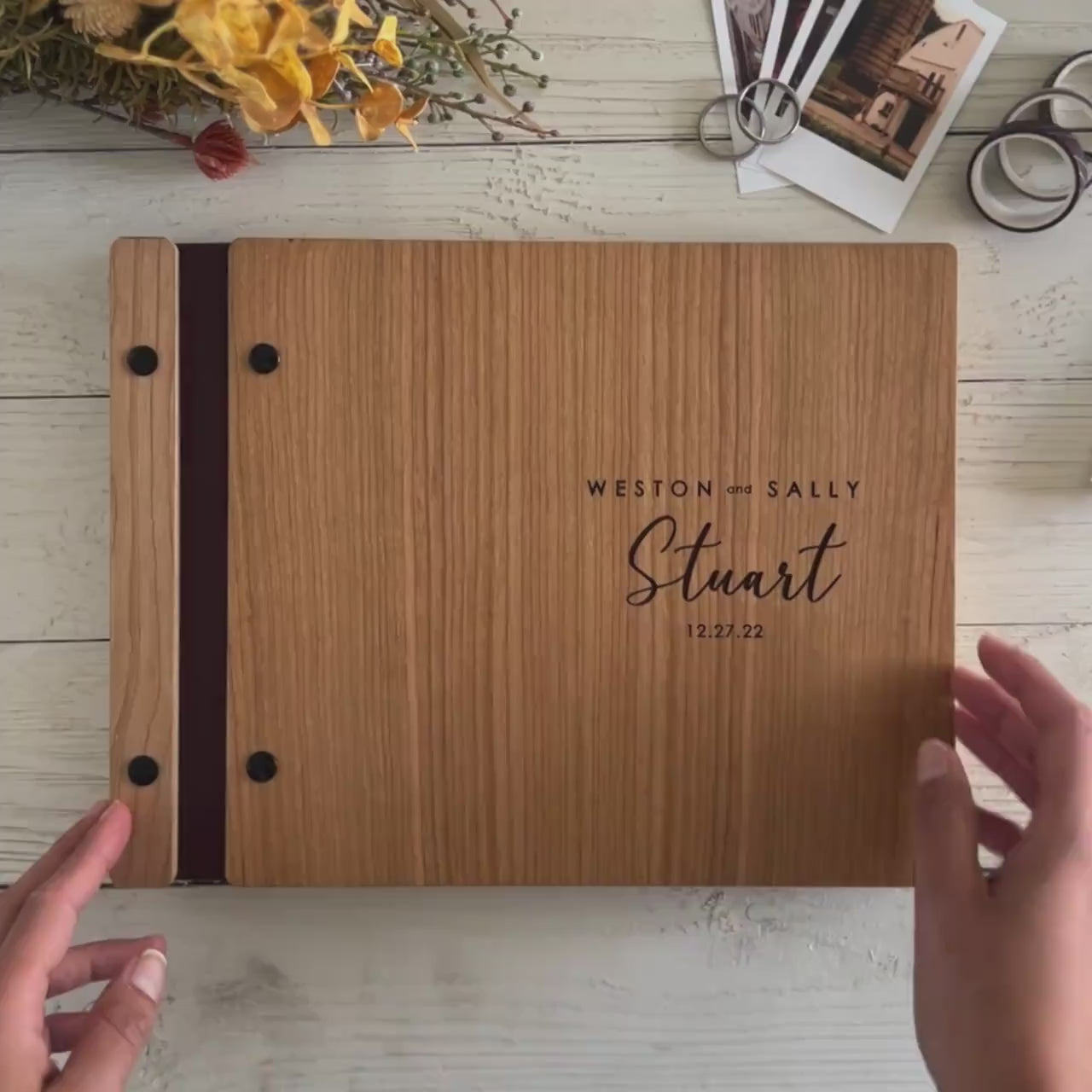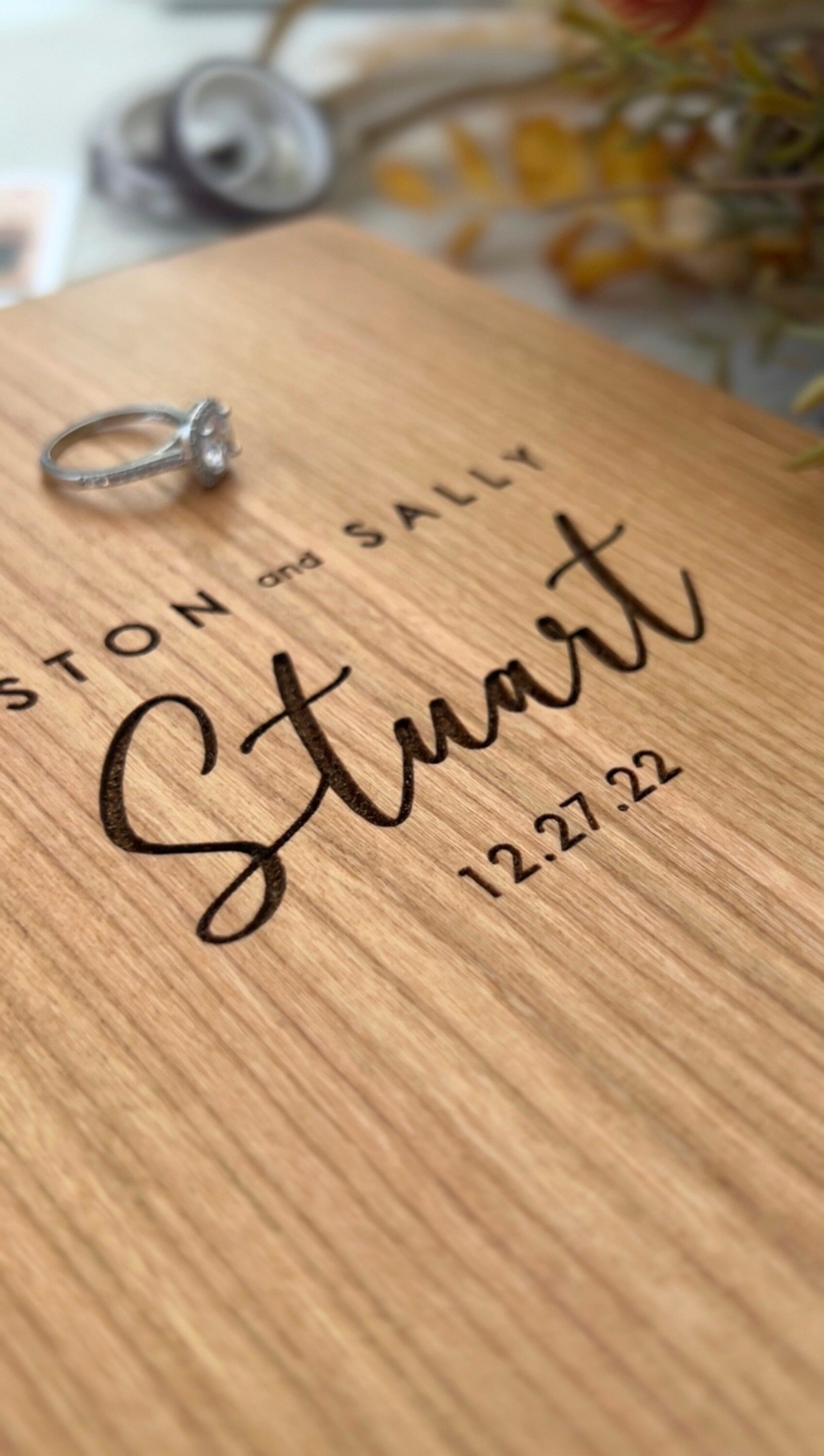 Create a timeless keepsake with our Wedding Guest Book, beautifully handcrafted in the USA from your choice of cherry or maple wood. The durable wood cover, finished with an environmentally friendly UV coating that's free of solvents, ensures your guest book is both elegant and sustainable. Personalize it with engraved details for a unique touch on your special day. Inside, acid-free paper preserves your guests' heartfelt messages for years to come. Versatile in design, this book can also be used as a scrapbook, photo book, or a Polaroid alternative guest book, making it the perfect way to capture the love and memories of your wedding day.