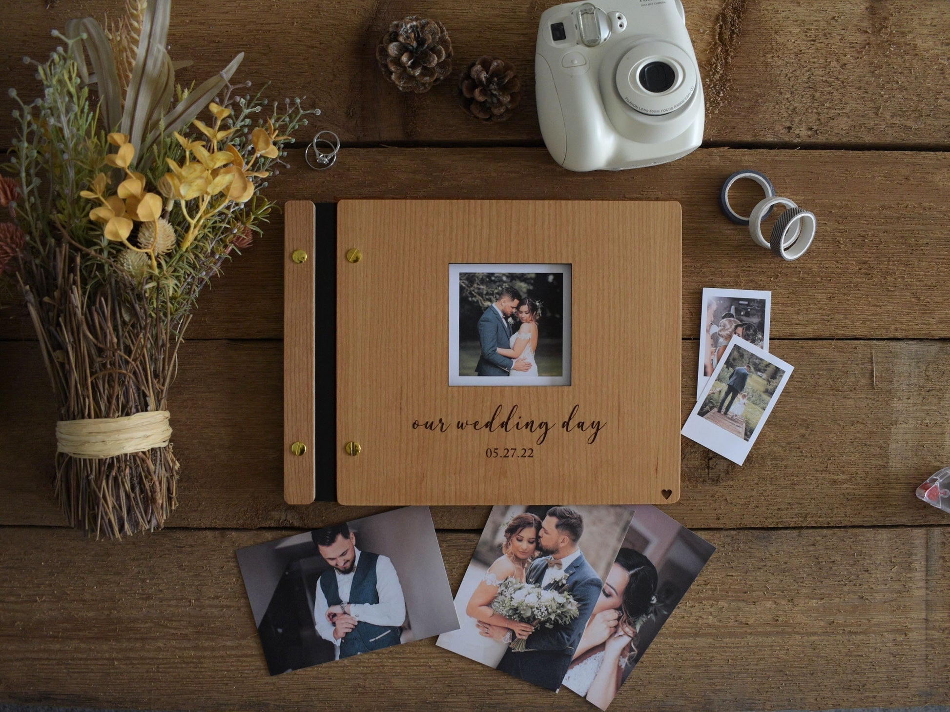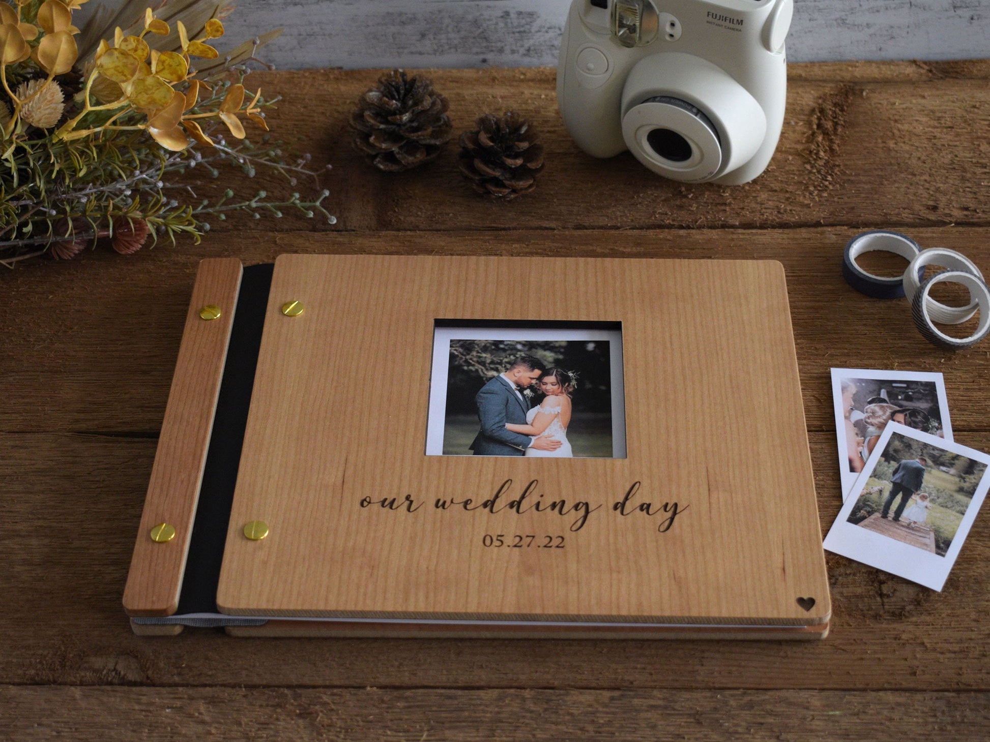 Square Cut Out Wooden Wedding Guest Book Design with Polaroid Photo Album - Engagement Album