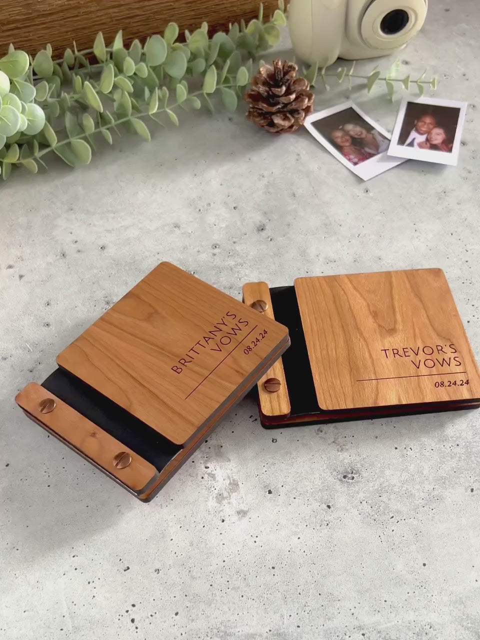 Custom Wooden Wedding Vow Books. Personalized vow booklets for weddings or vow renewals. A meaningful wedding gift and keepsake for couples. Laser engraved with your details, perfect with your guestbook.